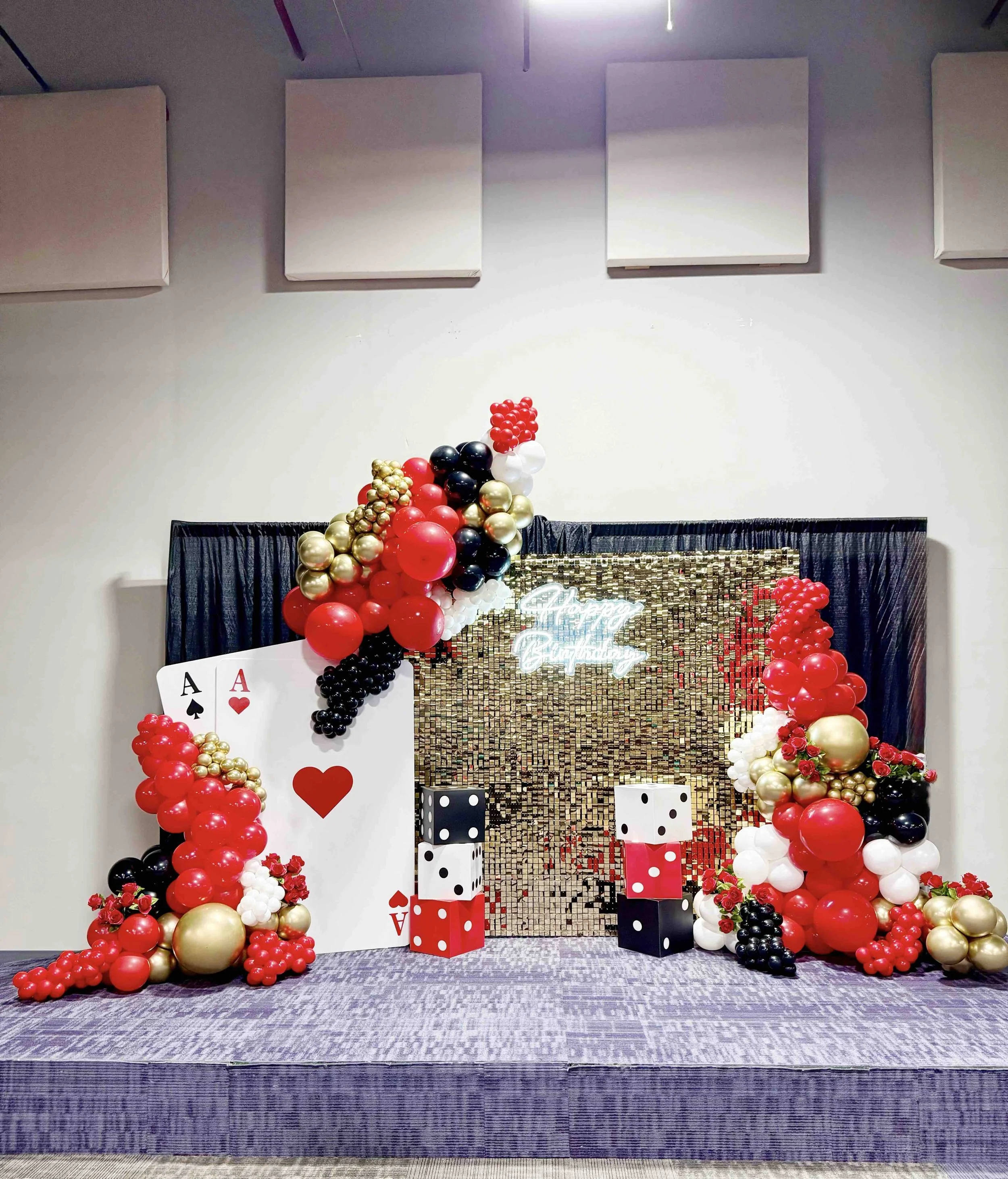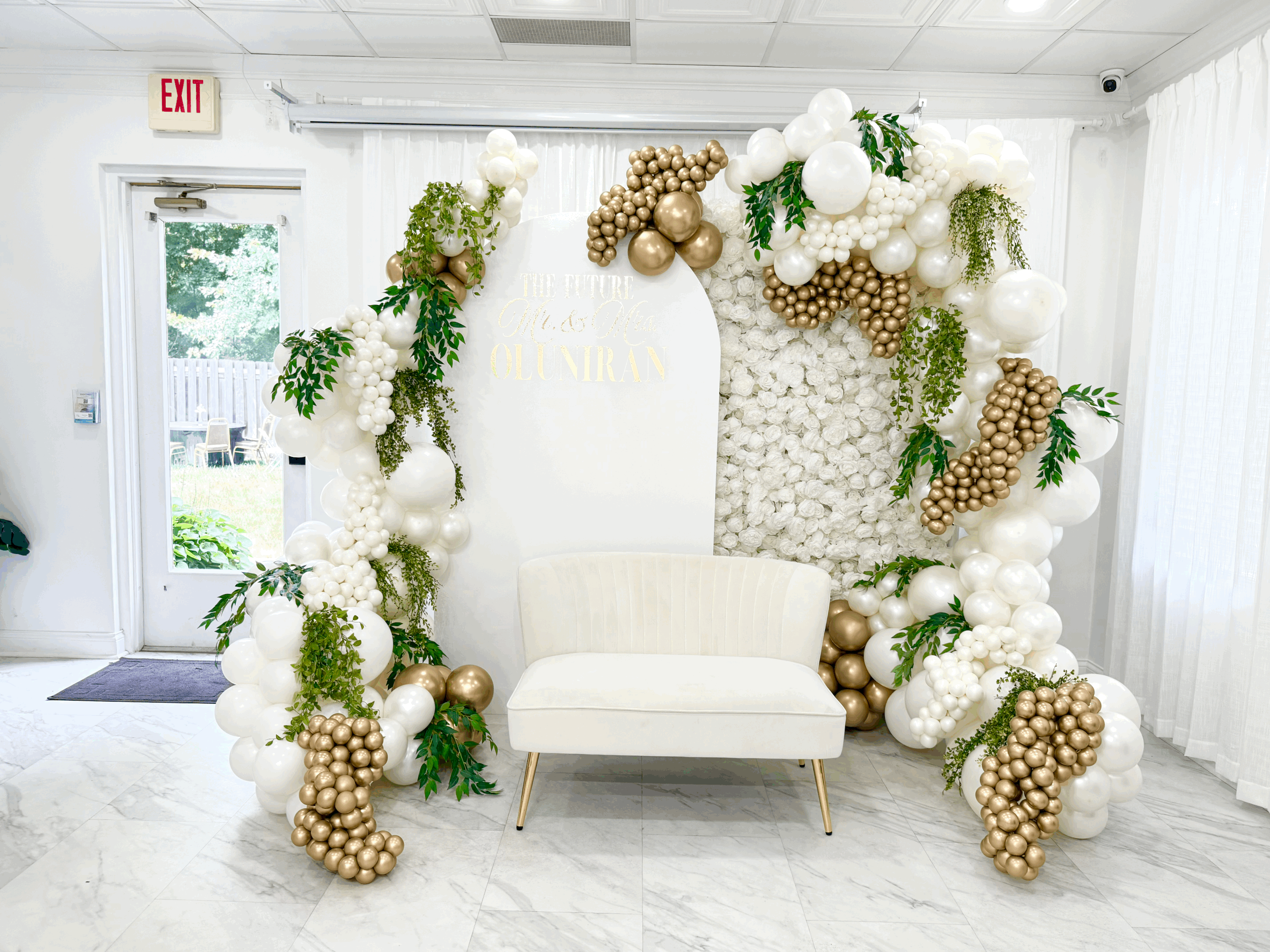 A statement-level installation designed to be the visual centerpiece of your event, featuring layered backdrops, luxe balloon styling, and elevated design elements.